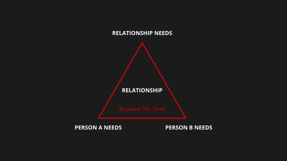 If we view a relationship as a triangle, there are three components: each participant, with their respective needs, and the relationship itself, which also has needs.